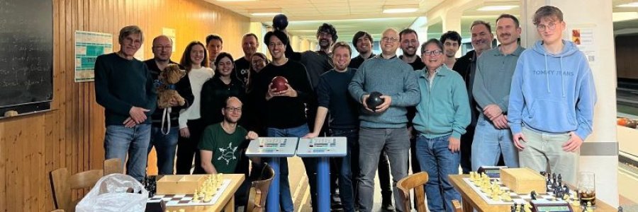 Im direkten Duell der Spitzenspieler konnte sich in einem starken Feld Amir vor Sven durchsetzen. Dabei hatte Sven sein Hundicap dabei, dass ihn noch einen weiteren halben Punkt kostete. Unser inoffizielles Abteilungsmaskottchen wollte sein Herrchen im tiefsten Wuffton der Überzeugung zum Kegel- und Schachsieg bellen, aber das gelang nur bedingt und so wurde Amir mit 7/7 Sieger. Sven folgte mit 5,5 und Laurin komplettierte mit 5 Punkten das Podium. Gratulation!