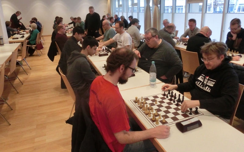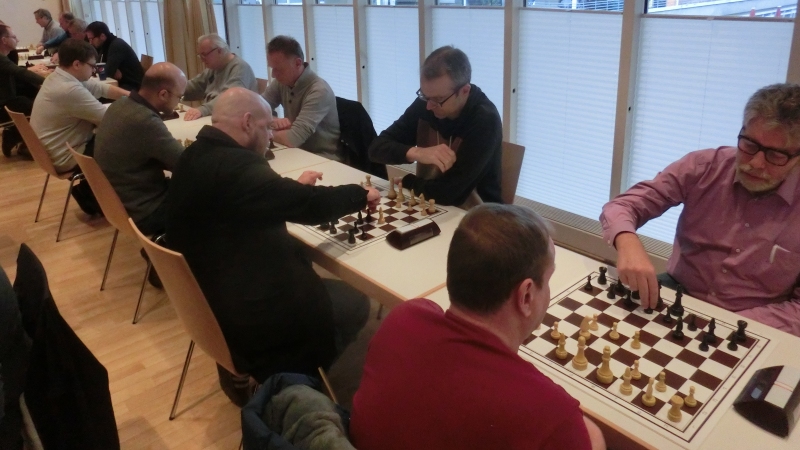 Uli Euler überraschte alle (ausgenommen sich selbst) mit einer extrem starken Performance am dritten Brett und startete sensationell mit 3 Siegen (Uli: „300 Prozent!“) ins Turnier. Auch im weiteren Turnierverlauf spielte (und babbelte) er starke Gegner in Grund und Boden. Die vorsichtige Frage von Matt im Parks Bergit Brendel, ob denn hier jetzt „Babbel-Schach“ gespielt werde, wurde von Uli selbstbewusst und wahrheitsgemäß mit „Ja“ beantwortet. Am Ende konnte Euli 5,5 Punkte für sich verbuchen. Die Ausbeute wäre noch höher ausgefallen, hätte er nach dem Mattsetzen die Finger von der Figur gelassen, bevor der Gegner Zeit reklamiert. Bekanntlich geht Matt vor Zeit, aber der Zug gilt erst dann als ausgeführt, wenn der Spieler die Figur losgelassen hat. Nach lautstarker Aufregung über den Gegner (der in der Zeitnotphase Figuren umgeworfen und regelwidrig vor dem Wiederaufbau die Uhr gedrückt hatte) und dem Schiedsrichter, der ihm geduldig die Regeln erklärte, fand Euli ebenso lautstark wieder zu seiner gewohnt guten Laune zurück und sprach fortan nur noch von 6,5 aus 9“.