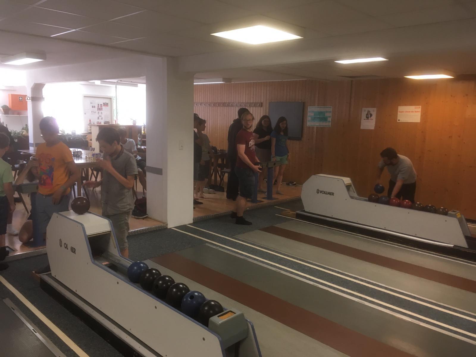 Weitere Highlights waren das Schwimmbad, wo unter anderem Betreuerweitwurf gespielt wurde, Jans und Roberts Brötchen, die sehr liebevoll belegt wurden und auch das Schachkegeln. Hier wurden spontan Regeln ersonnen und dann in Viererteams gespielt. Wie im normalen Schach spielt die jeweils erste Nummer der Mannschaft gegeneinander, genau wie die darauffolgenden Spieler. Anders ist aber, dass man zuerst gegeneinander kegelt und dann basierend auf der Differenz an Pins vor oder Nachteil erhält. Das beginnt mit einem Mehrbauern, kann aber damit enden, dass das dritte Schach bereits zum Gewinnen reicht. Nach einer Gruppenphase kristallisierten sich zwei Teams als den anderen überlegen heraus und trugen ein Finale untereinander aus. Hier musste Jans Team nach einem 2:2 aufgrund der dann von Robert spontan angewandten Berliner Wertung eine Niederlage gegen Team Robert hinnehmen. Und wieder einmal zeigt sich, warum Regeln schaffen, anwenden und auslegen am besten bei verantwortungsvollen Personen liegen sollte, die im Idealfall nicht mitspielen.