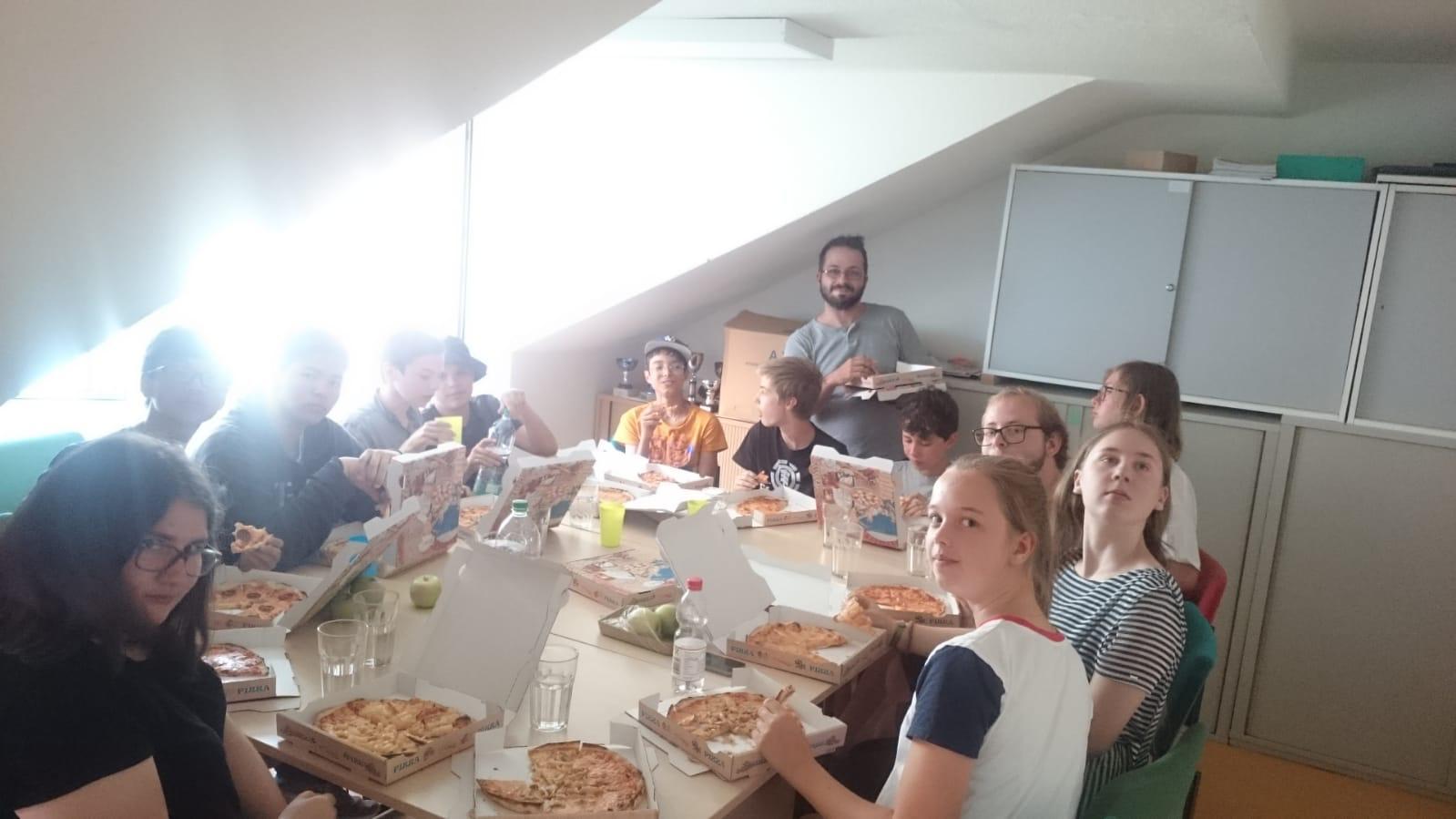 Während anfänglich noch klar die Sprachbarriere regierte, wurde, sobald Schachbretter auf dem Tisch landeten, wild drauflos gespielt. So kam es oft genug auch vor, dass unqualifizierte Zwischenrufe von Lionel und Robert manchem Kind die Stellung zerstörten. Zwischen Softdrinks und Merguez wurde die deutsch-französische Freundschaft gefeiert. Da die Betreuer noch bis tief in die Nacht bei Wasser und Brot zusammensaßen und gesellig Geschichten austauschten, ging es am Folgetag erst um 14 Uhr los. Die Besteigung des Main Towers erfolgte bei 39 Grad im Schatten, dennoch gab es keine Hitzeschläge zu verzeichnen. Nicht unglücklich waren die Kinder also, nach guter Wegfindung durch Dominik und einem dekadenten Mahl bei Best Worscht in Town in dem Verein anzukommen. Dort also wurde viel geblitzt und Karten gespielt, in aller Kühle, die die Aussenwelt nicht bieten konnte.
