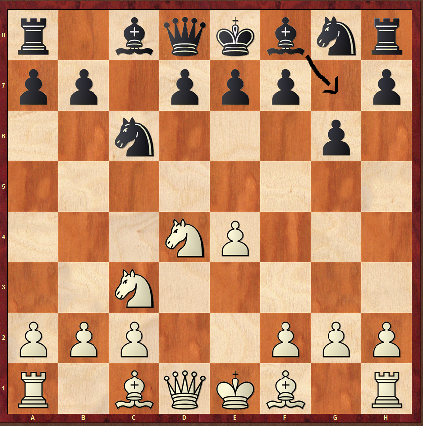 Die schönste Partie des Turniers geht dieses Jahr, frei nach dem Urteil der Remis-Jury des FTV, an Jan und Robert. Diese spielten eine hart umkämpfte Partie, in der es hin und herging. So hatte Jan mit weiß im beschleunigten Drachen schnell ein starkes Zentrum erreicht, Robert drohte aber früh mit 5.Lg7! seinen Läufer unglaublich gut zu platzieren. Dabei nutzte er eine Eröffnungswaffe, die bereits Henry Bird auf dem dritten DSB-Kongress 1883 einsetzte und die erst letztes Jahr von Magnus Carlsen gespielt wurde. Nachdem Jan etwa 30 Minuten plus minus 30 an Sxd4 überlegte und beide verschwitzt und komplett ausgelaugt ob der komplexen Stellung am Brett saßen, erschien ihnen der Geist des heiligen Hendrik, der ihnen leise „Remis, Remis“ in das Ohr säuselte. Nachdem Jan dies ob der gewaltigen Drohung (siehe Diagramm) anbot, musste Robert lange abwiegen, ob seine offene c-Linie in Verbindung mit dem starken Schwarzfelder den Nachteil im Zentrum ausgleichen könnte, nahm er das Angebot gerne an, um die wichtigen Fragen auf das Fußballfeld zu verlegen.