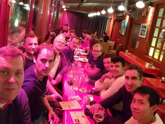 An dem freien Nachmittag machten wir wie üblich einen Ausflug ins nahegelegene Karlsruhe. Zumindest ein Teil sah sich die Ausstellung über die Griechen des Altertums (genauer gesagt Mykene an). Anschließend kehrte die Meute wie jedes Jahr im Stövchen ein, das mit lecker Bier Gäste von nah und fern anzieht. Nils verfolgte hier das Ziel, die verschiedenen Weine von der Karte zu testen, alle aus der Region. Auch dieses Ergebnis lädt zur Wiederholung ein.