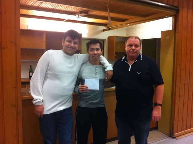Wenn der ganz große Wurf mit einem Turniersieg erwartungsgemäß auch in diesem Jahr nicht gelang, so schafften es doch Tarkan und Bao in die Preisränge. Mit dreieinhalb Punkten erspielte sich Tarkan einen Jugendpreis im B-Open für Spieler mit einer DWZ unter 1650 und steigerte dabei seine DWZ um unglaubliche 92 Punkte auf 1288. Und Bao, der mit einer DWZ von 1773 an den Start ging, durfte sich mit vier Punkten über einen Rating-Preis und einem Zuwachs von sehr guten 33 DWZ-Punkten freuen. Das beste Ergebnis nach sieben Runden erreichte Michi mit viereinhalb Punkten, einschließlich eines Remis gegen GM Viesturs Meijers in der dritten Runde. Eine sehr gute Leistung zeigte auch unser zweiter Jugendlicher Jens, der mit 3 Punkten seine DWZ um 70 Punkte erhöhen konnte. Mit jeweils drei Punkten konnten auch Robert und Hendrik ihre DWZ um 15 bzw. 12 Punkte erhöhen, wobei letzterer mit sechs Punkteteilungen den Titel Remis-König mit drei anderen Spielern teilte. Vielleicht schafft er die sieben Punkteteilungen ja nächstes Jahr… Mit vier Punkten erspielte Nils genau den aus dem DWZ-Schnitt seiner Gegner resultierenden Erwartungswert. Leichte Einbußen verzeichneten Uli, Jan und Dominik mit dreieinhalb, drei bzw. zweieinhalb Punkten. Klaus konnte mit dreieinhalb Punkten sein Ergebnis des vergangenen Jahres wiederholen - und ging in der Endabrechnung gerade so noch einen Platz vor seinem Sohn, Jens, ins Ziel. Ja ja, die Jugend...