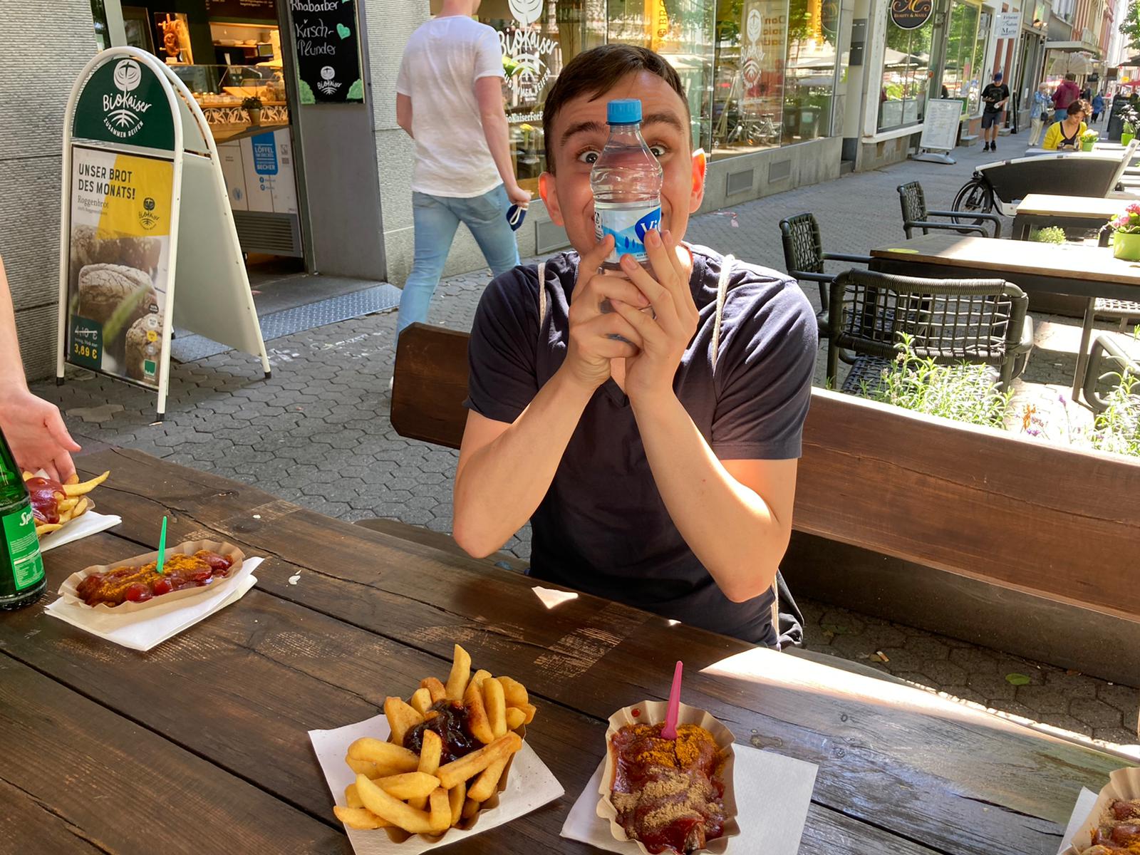 Der Spruch der Woche stammt definitiv von Jan, der seit Jahren im Europod-Rahmen mithilft: Als Robert ihn etwas komisch anguckte, weil er sich zur Currywurst und Pommes ein Wasser bestellte, hieß es nur „Ich achte im Moment auf meine Linie!“
