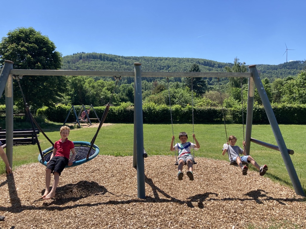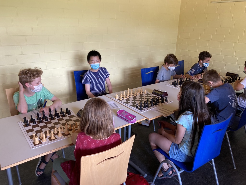 Unter Anleitung von Hendrik Raab und Dominik Storch machte bereits die erste Teambesprechung, in der es neben dem Wettkampf auch um die allgemeinen Verhaltensregeln und die Hygienebestimmungen der Jugendherberge ging, klar, dass die Freude der Kinder groß war, nach langer Zeit einfach mal wieder in der Gruppe unterwegs zu sein. Dieses Bedürfnis anerkennend führten wir zwar durchaus die ein oder andere Partieanalyse durch und versuchten eine bestmögliche Spielvorbereitung, ließen unseren jugendlichen Spielern aber auch viel Freizeit, die vor allem auf dem großzügigen Außengelände bei meist gutem Wetter ausgiebig ausgekostet wurde. Ein Highlight war anschließend am Samstagabend das gemeinsame Anschauen des deutschen EM-Vorrundenspiels gegen Portugal – zu diesem Zeitpunkt erahnte noch keiner das spätere frühe Ausscheiden der deutschen Nationalmannschaft aus dem Turnier.